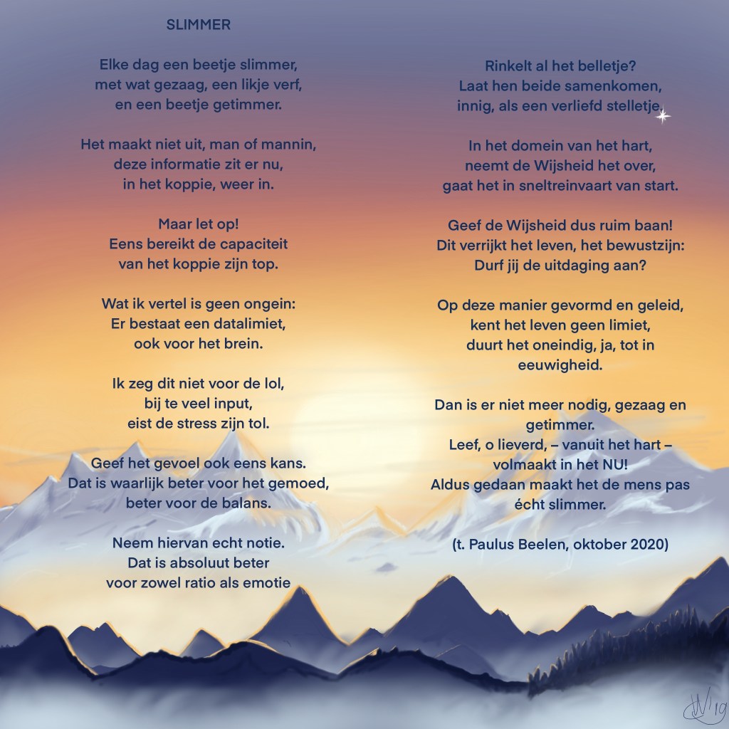 Ik voel me opgelucht, lichter, rustiger, meer gegrond. En dat dit mij gebeurde in de week nadat ik het boek gelezen had. Toeval bestaat niet….